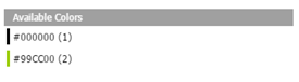 Renders selectable blocks for the colors. It does not display the HTML color value or the Item Count. |