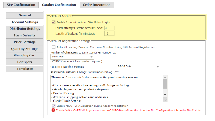 A new feature within 2.19.4 is an Account Lockout setting. This setting is present for both Console users and Front End Shoppers and is highly customizable within the Site Manager menu.