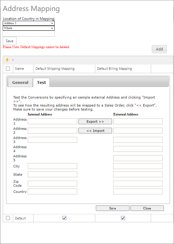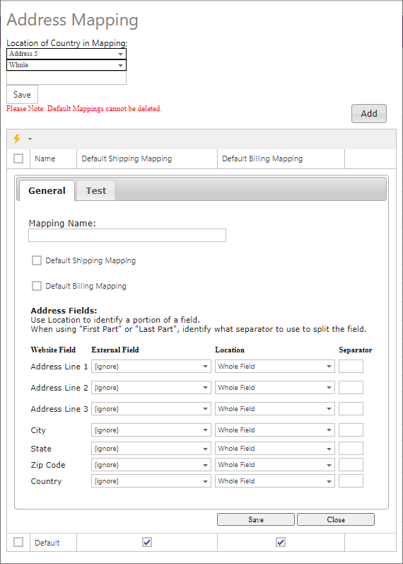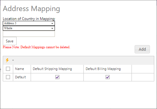 | Default Shipping Mapping | A checkbox that when checked will set the mapping as the default shipping mapping. |