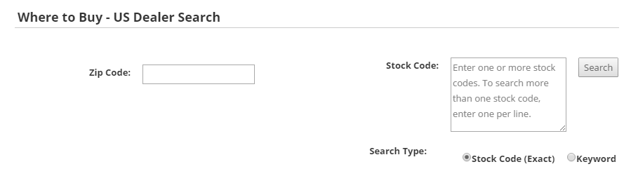 When the EnableStockCodeSearch property is set to its default value of true, the search interface includes the stock code search box, whereas setting the value to false offers only a zip code search.