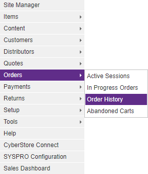 Deleting an Order in CyberStore does not affect the SYSPRO order and does not alter information in the back office system.