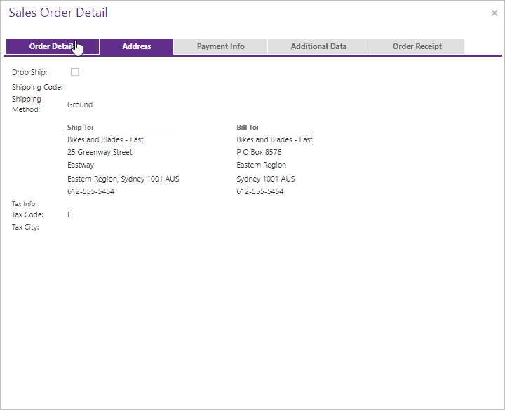 Use the Addresstab to view shipping and billing address information and tax information about an order.