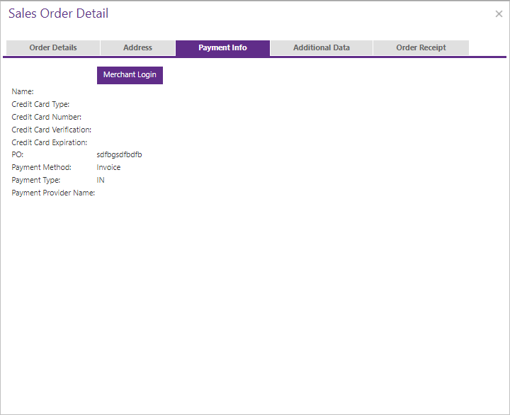 | Merchant Login | A button that, when clicked, allows you to log into your credit card merchant account (when using credit card Payment Providers only). |