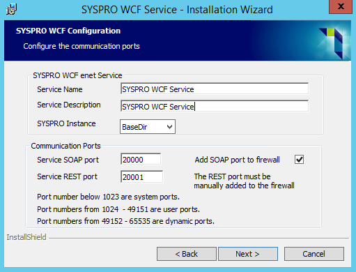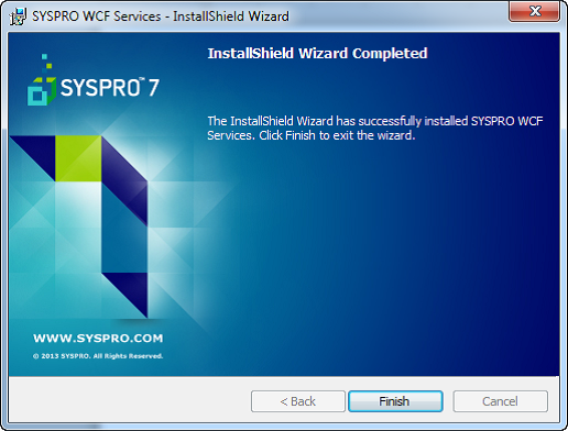 The "SYSPRO WCF Service: Installation Complete" window will display and select Finish.