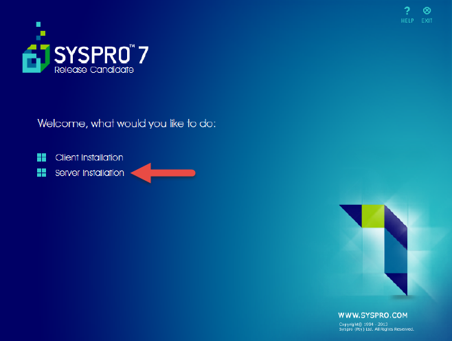 First, run the SYSPRO 7 Installation DVD. When the home window displays, select "Server Installation."