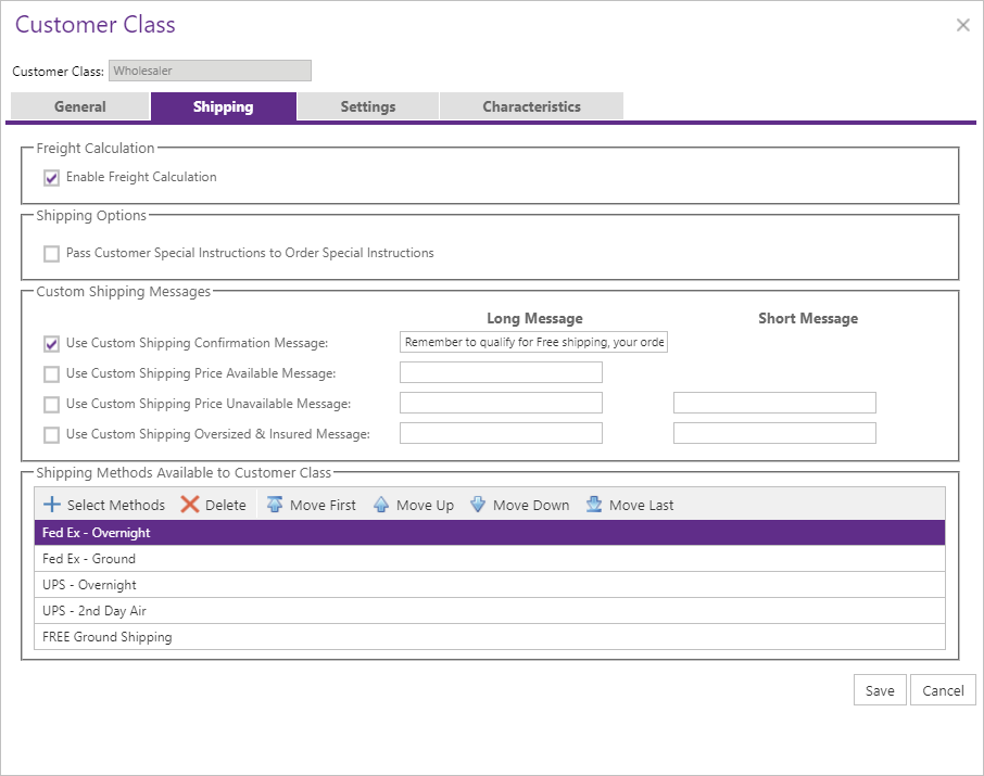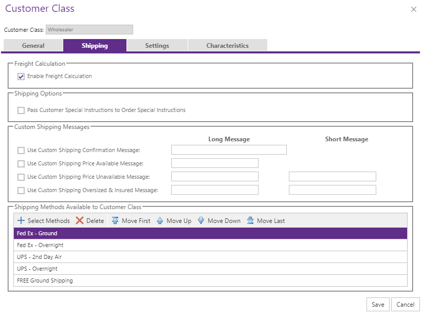 Select which Shipping Methods that members of this Customer Class can choose from.