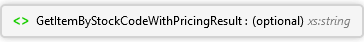 <xs:element minOccurs="0" maxOccurs="1" name="GetItemByStockCodeWithPricingResult" type="xs:string" xmlns:xs="http://www.w3.org/2001/XMLSchema" />
