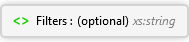 <xs:element minOccurs="0" maxOccurs="1" name="Filters" type="xs:string" xmlns:xs="http://www.w3.org/2001/XMLSchema" />