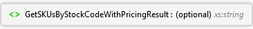 <xs:element minOccurs="0" maxOccurs="1" name="GetSKUsByStockCodeWithPricingResult" type="xs:string" xmlns:xs="http://www.w3.org/2001/XMLSchema" />