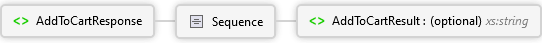 <xs:element name="AddToCartResponse" xmlns:xs="http://www.w3.org/2001/XMLSchema"> <xs:complexType> <xs:sequence> <xs:element minOccurs="0" maxOccurs="1" name="AddToCartResult" type="xs:string" /> </xs:sequence> </xs:complexType> </xs:element>
