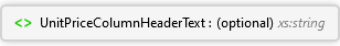 <xs:element minOccurs="0" maxOccurs="1" name="UnitPriceColumnHeaderText" type="xs:string" xmlns:xs="http://www.w3.org/2001/XMLSchema" />