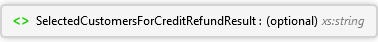 <xs:element minOccurs="0" maxOccurs="1" name="SelectedCustomersForCreditRefundResult" type="xs:string" xmlns:xs="http://www.w3.org/2001/XMLSchema" />