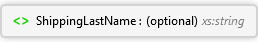 <xs:element minOccurs="0" maxOccurs="1" name="ShippingLastName" type="xs:string" xmlns:xs="http://www.w3.org/2001/XMLSchema" />