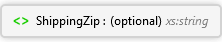 <xs:element minOccurs="0" maxOccurs="1" name="ShippingZip" type="xs:string" xmlns:xs="http://www.w3.org/2001/XMLSchema" />
