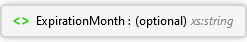 <xs:element minOccurs="0" maxOccurs="1" name="ExpirationMonth" type="xs:string" xmlns:xs="http://www.w3.org/2001/XMLSchema" />