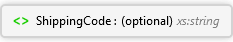 <xs:element minOccurs="0" maxOccurs="1" name="ShippingCode" type="xs:string" xmlns:xs="http://www.w3.org/2001/XMLSchema" />